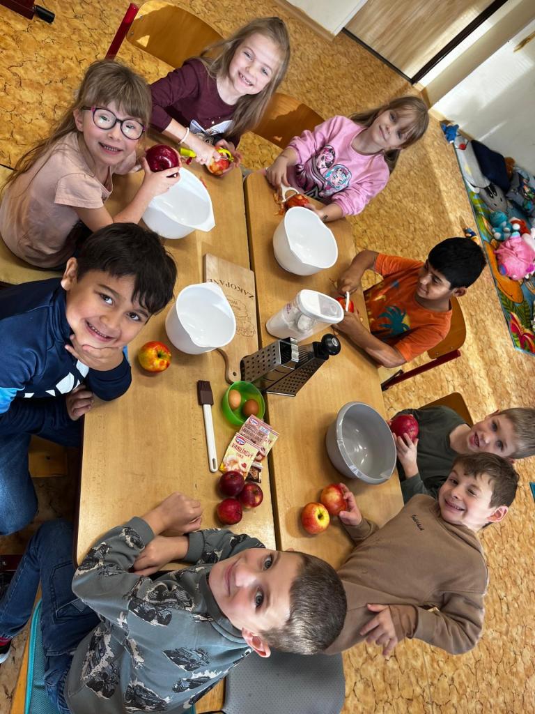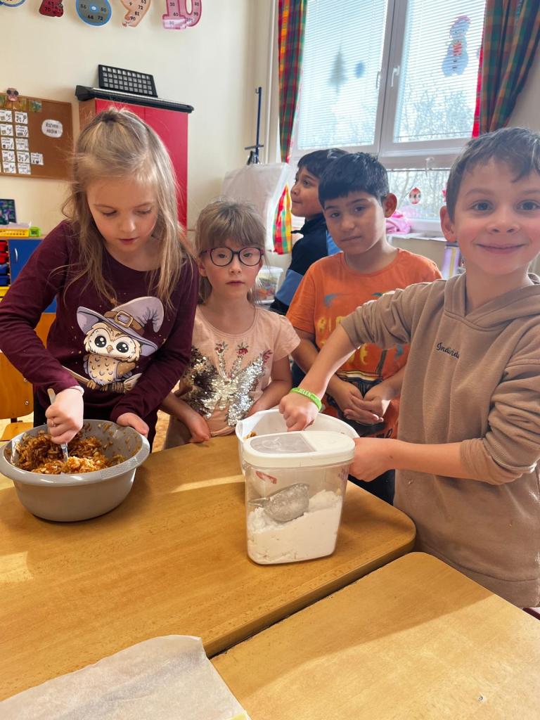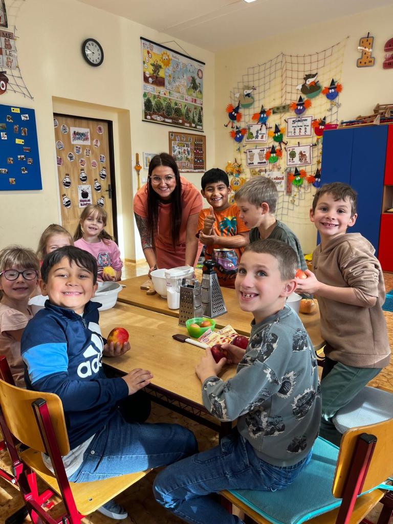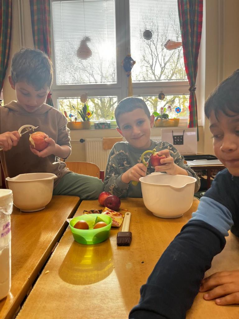 Prvňáčci si dnes užili voňavé dopoledne – pekli jablečný štrúdl.